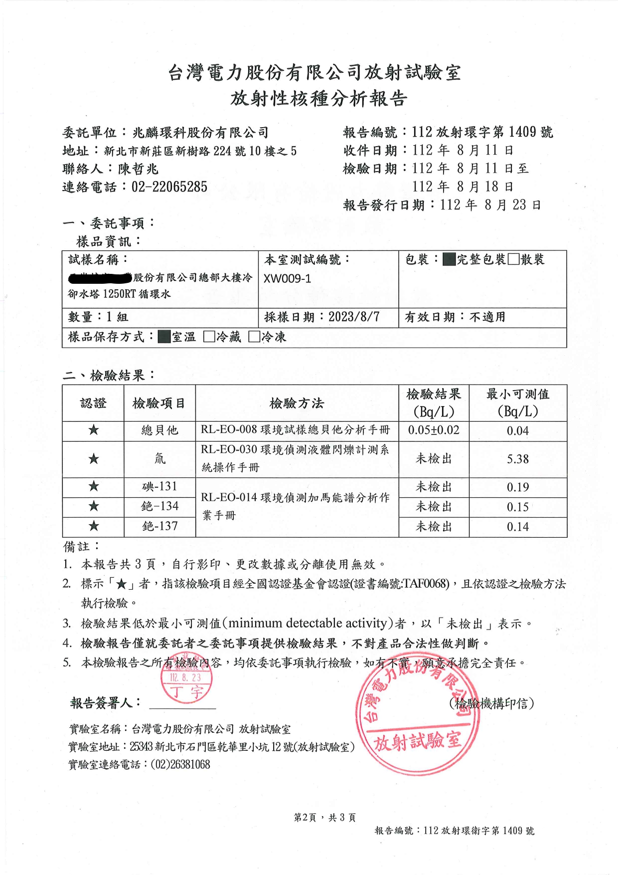 物理性除垢盾放射性(輻射)檢測報告